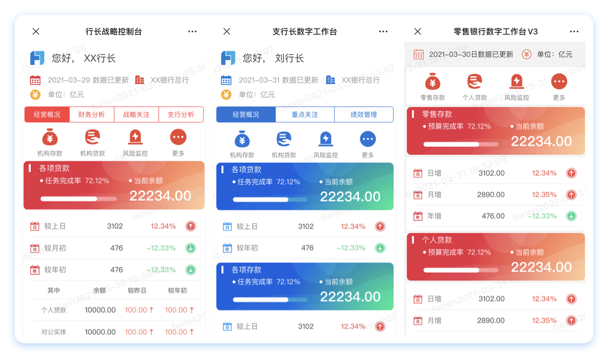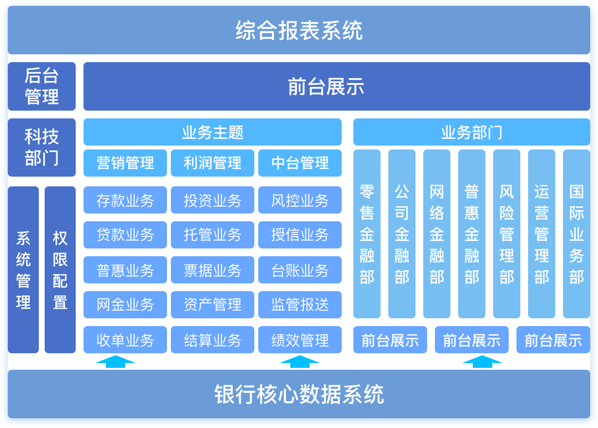 基于稳定的底层数据仓库技术,建立全面、便捷、直观的经营、财务、绩效、风险和监管一体化的数据展现分析平台,使领导能便捷准确的进行决策指定,从了解行内现状到发现问题,到压力下放,形成一个闭环。