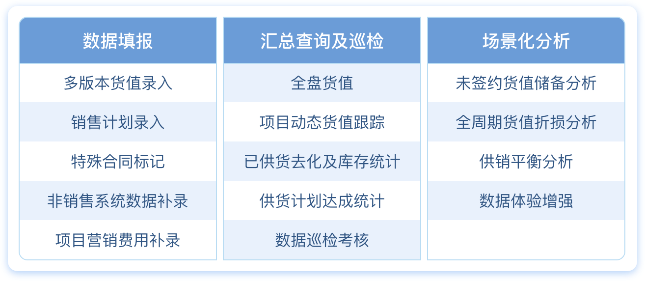 流程管控将实现可研版、启动会版、方案版、目标责任书、动态版的货值进行计算后填报,系统随即自动汇总。