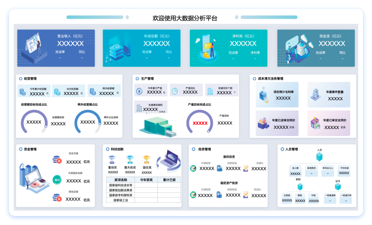 定义12个建筑行业核心指标,协助业务人员管控指标、确保数据准确合理。