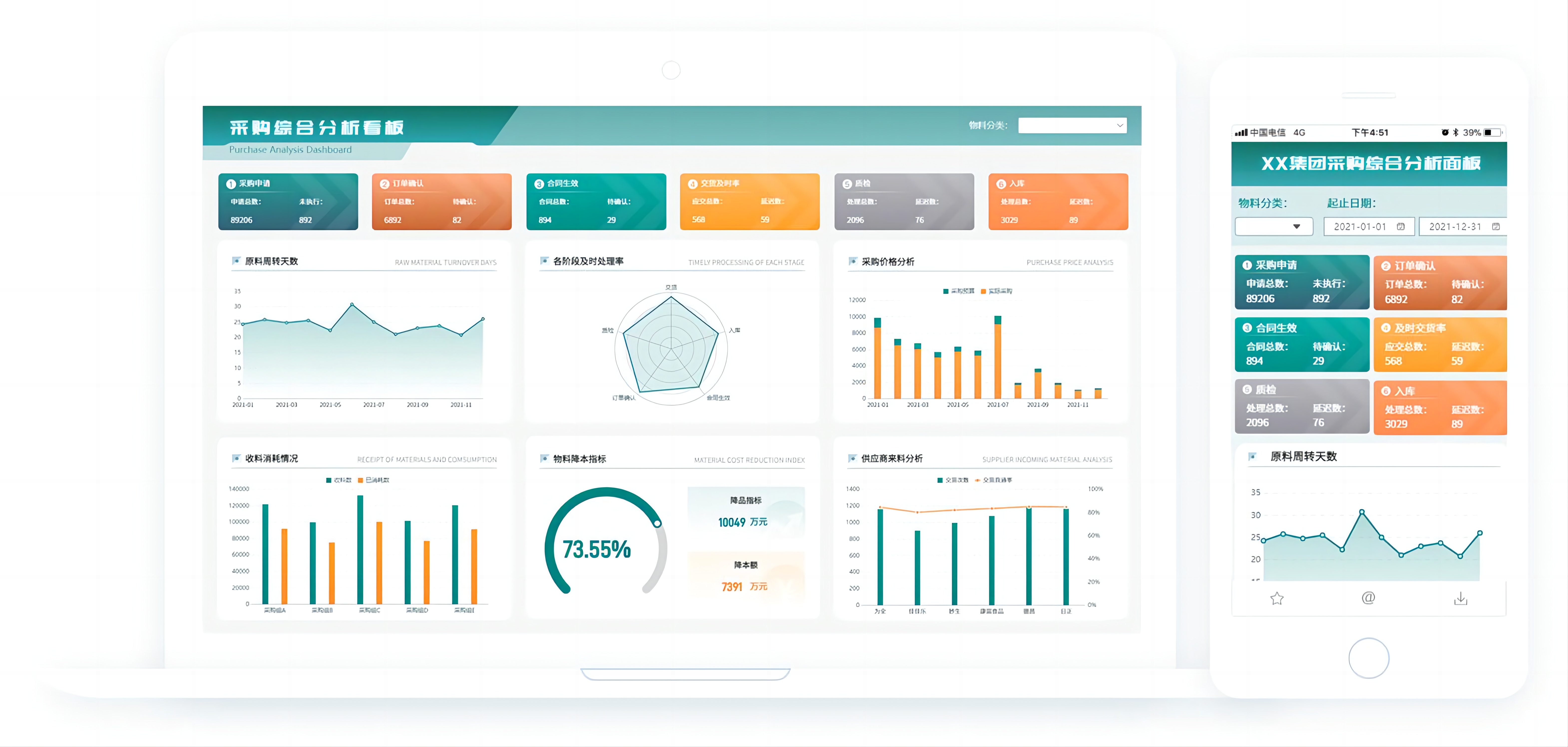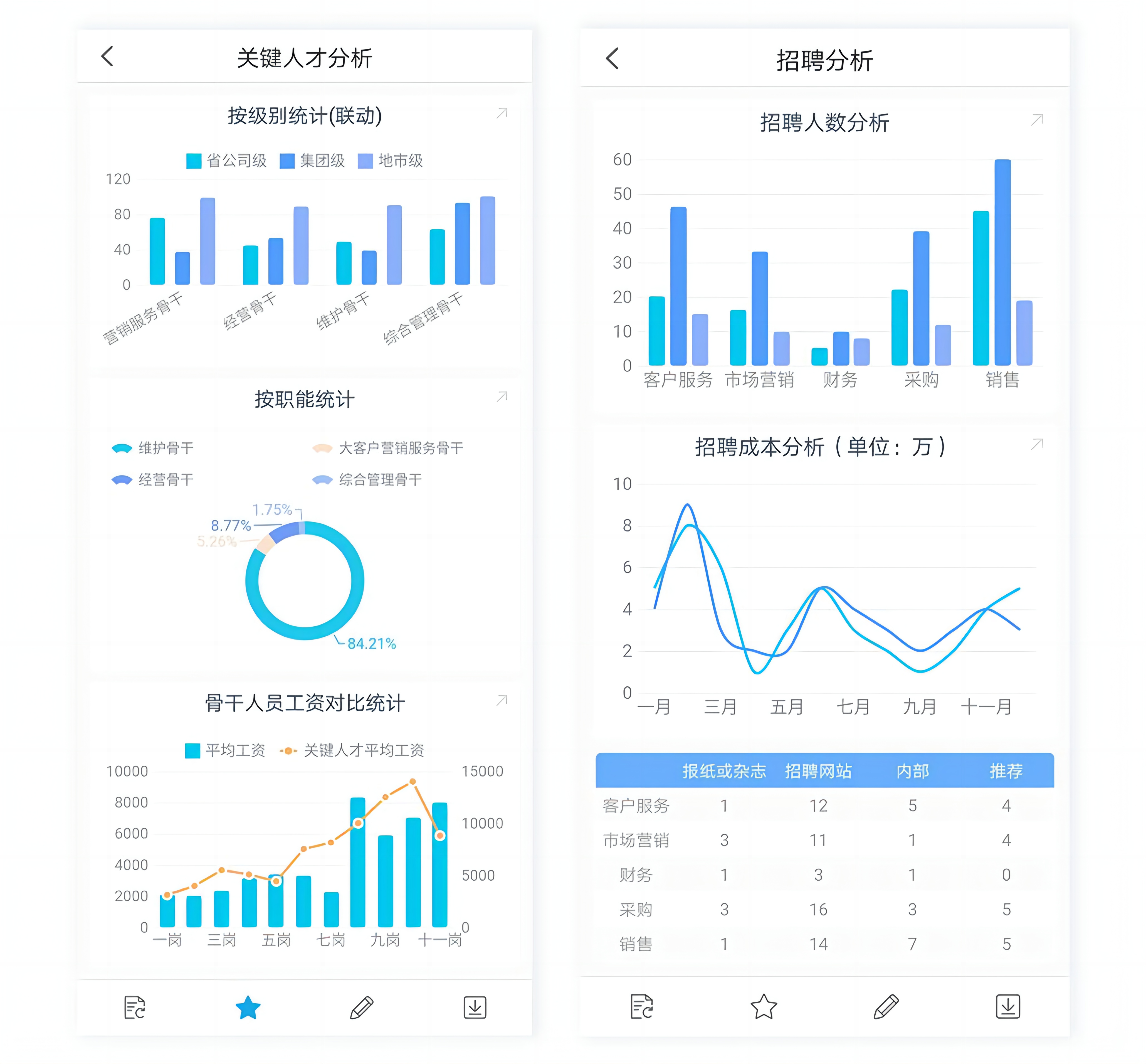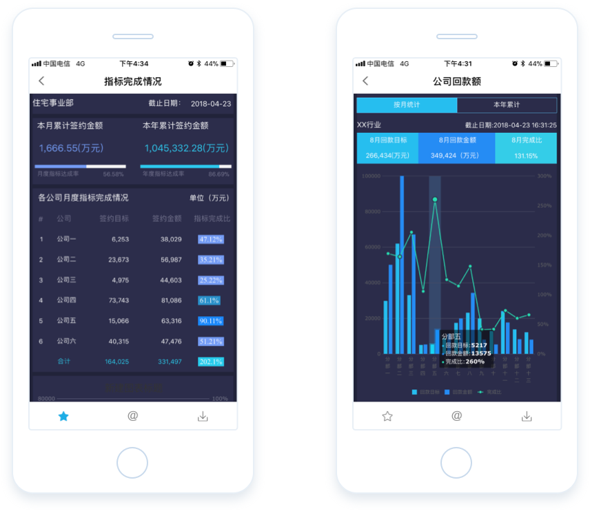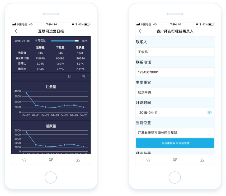 提供掌上统一数据入口,集合角色相关的常用报表、数据指标、公告通知等