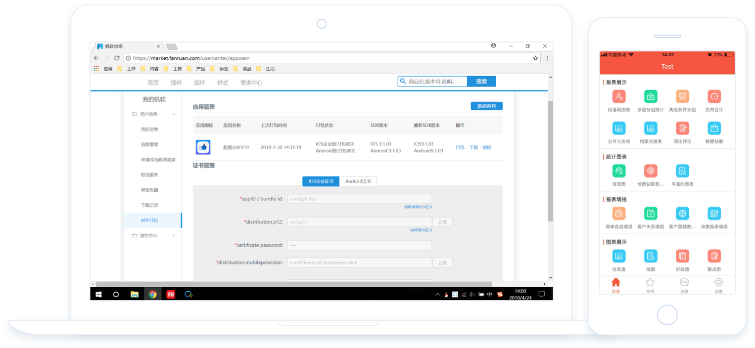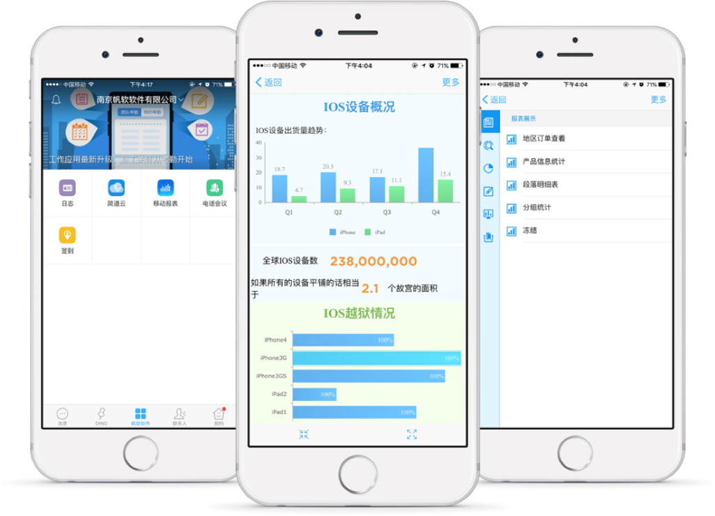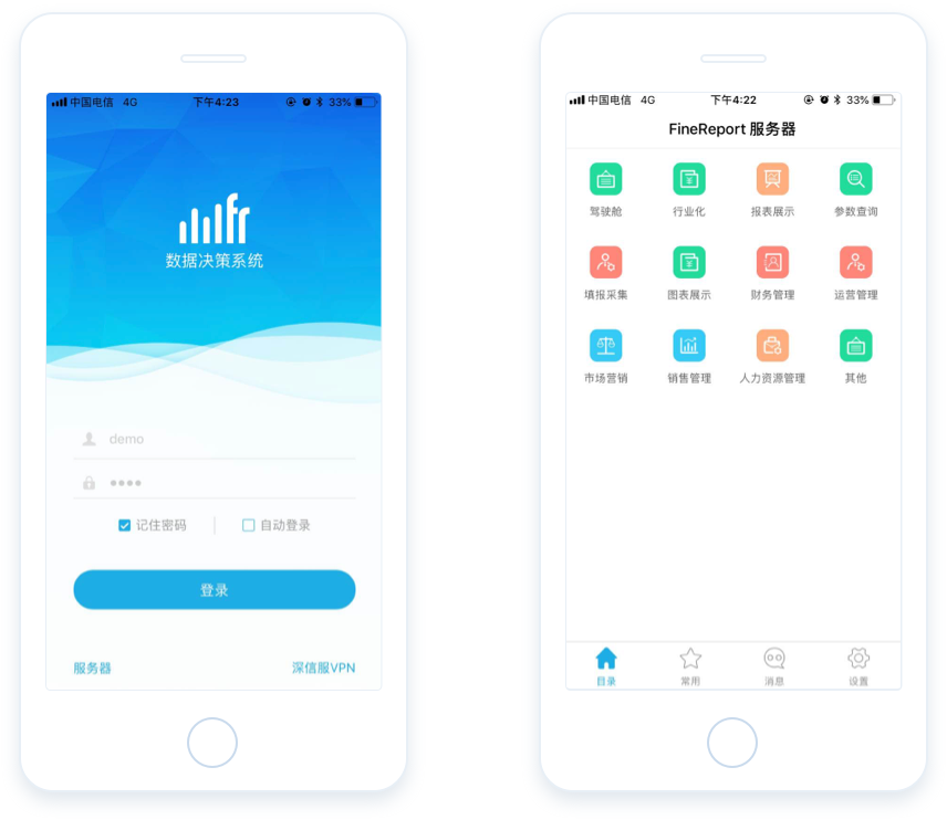 将一组有业务关联的移动端报表组合成轻应用的形式,集成到企业自身的平台内。