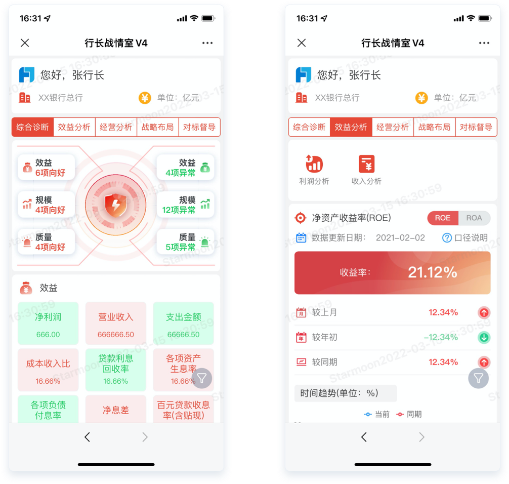 华东某行紧跟数字化转型风向,深化数据应用的业务场景,利用行长战情室,构建移动端数据入口,整合信息资源渠道。