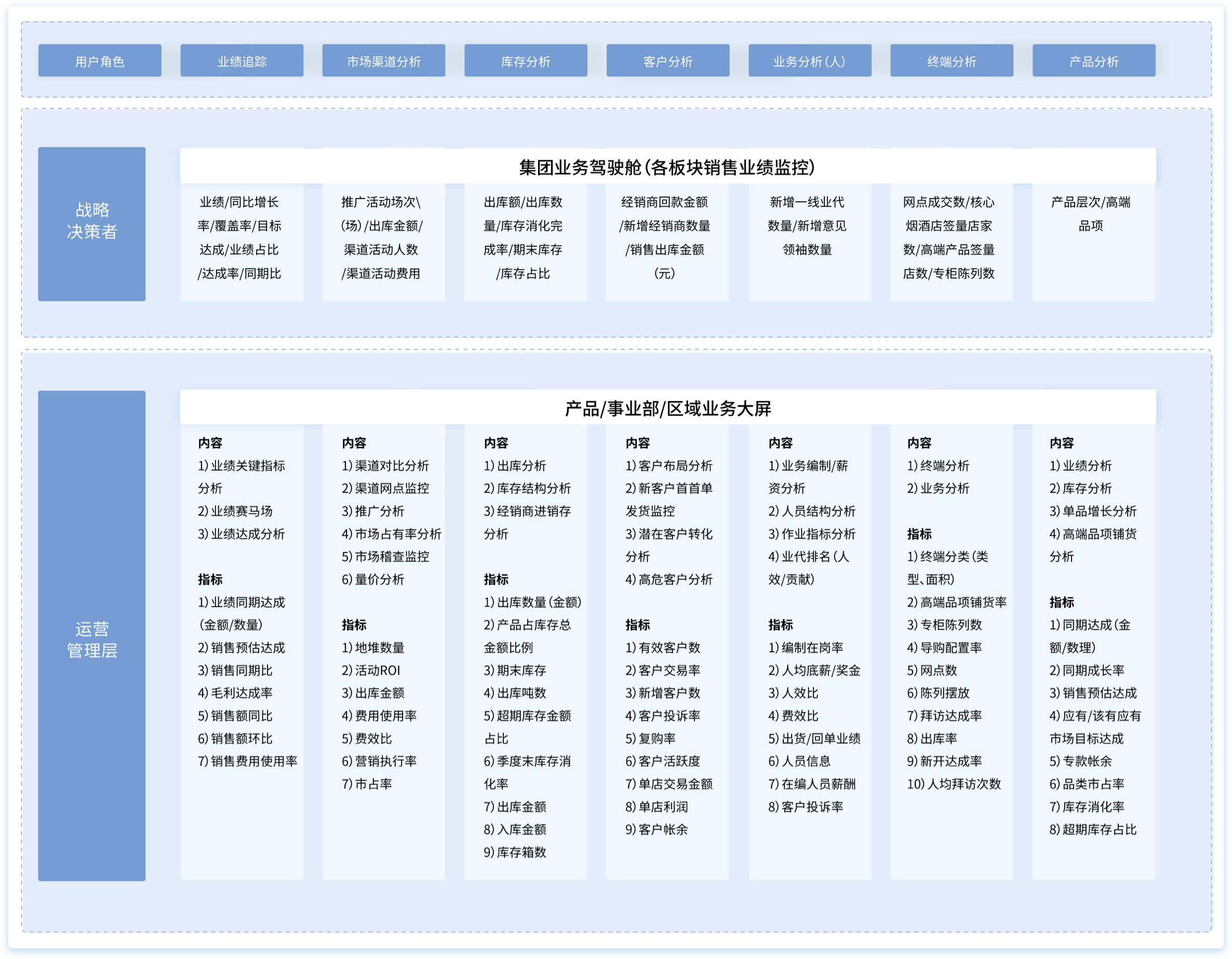 搭建业务数据分析指标体系,形成各行业、集团、企业、业务单元的数字化管理驾驶舱体系,辅助企业数字化管理及决策。