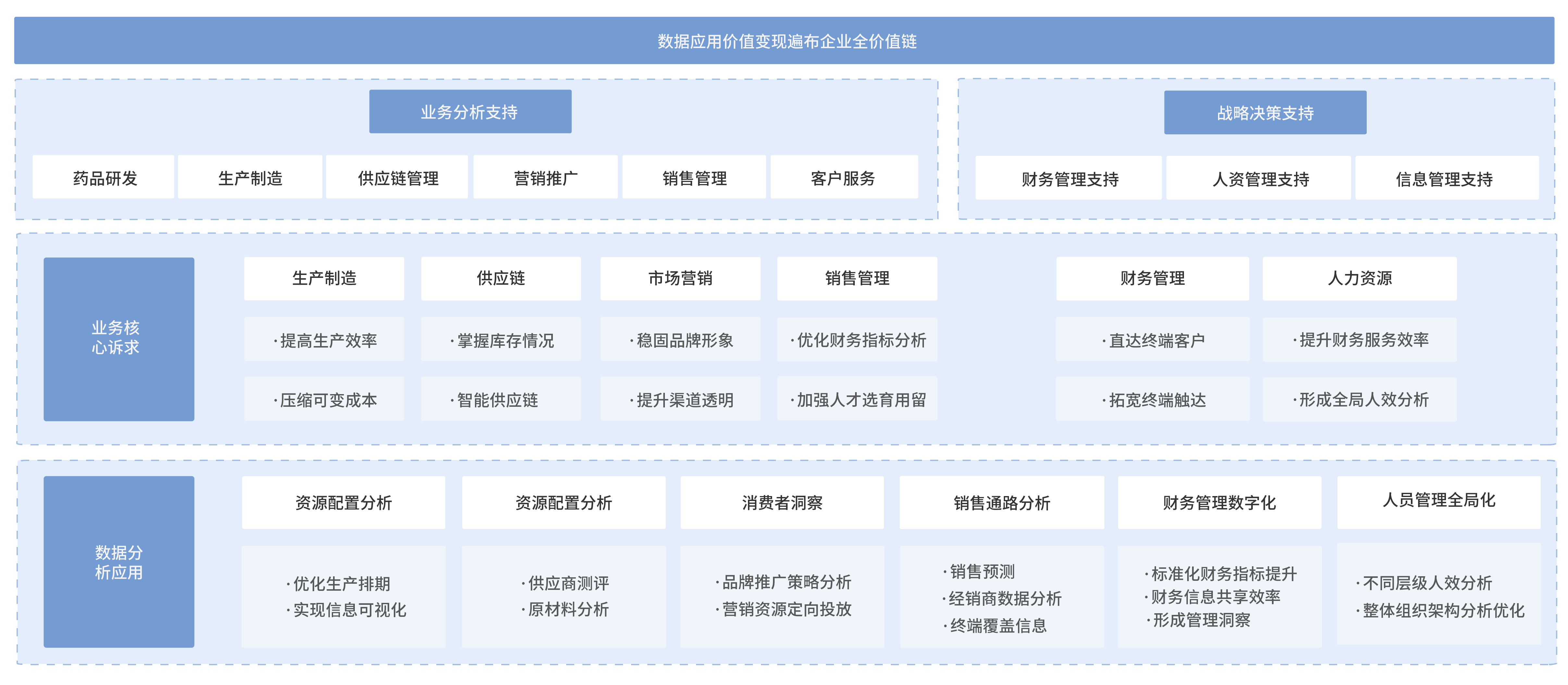 医药行业细分领域多,业务板块多,业务模式多,业务系统多,建设辅助决策的BI应用需要从多个异构的业务系统以及数据源中取数进行分析,天然存在数据孤岛问题。