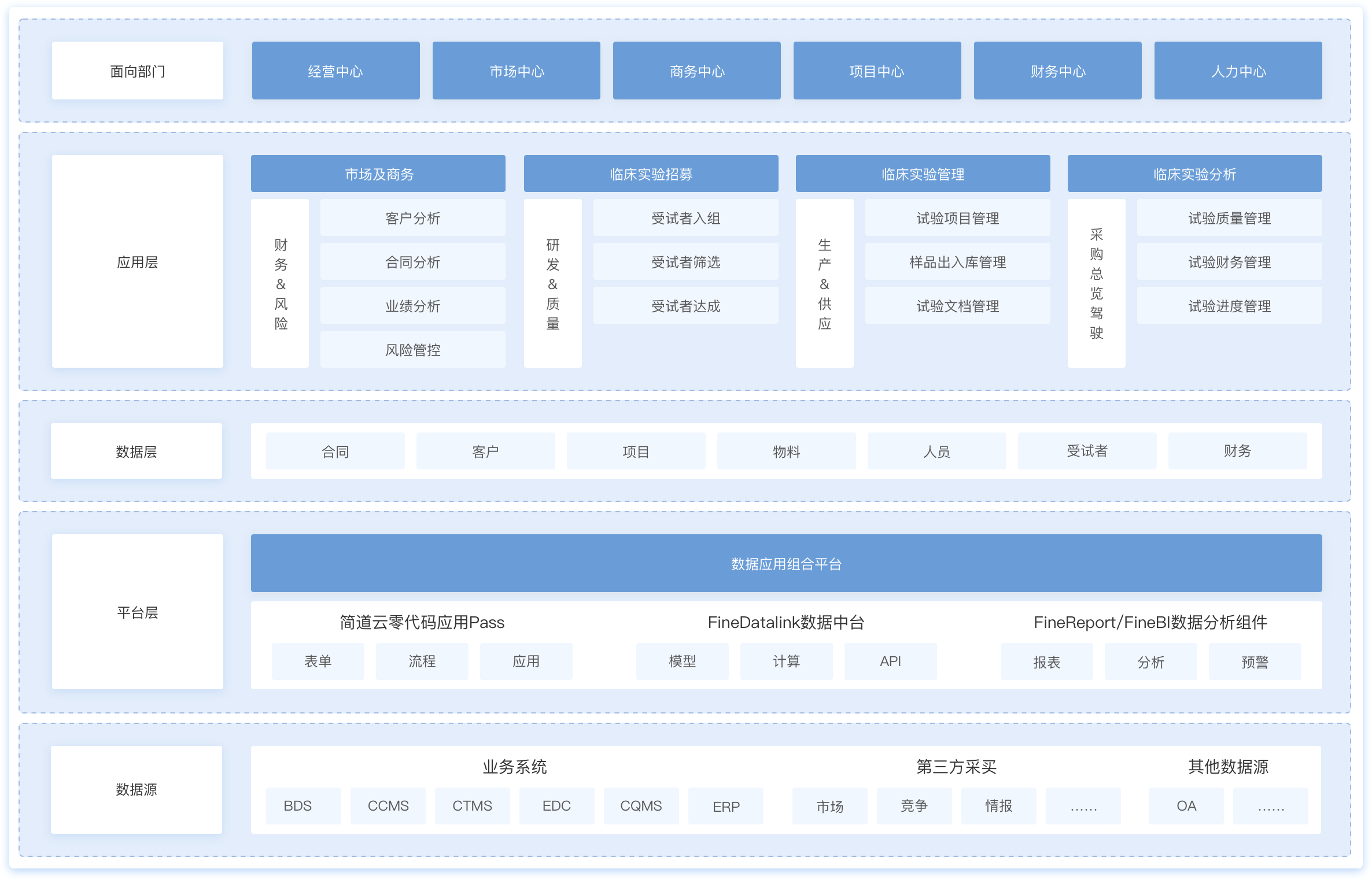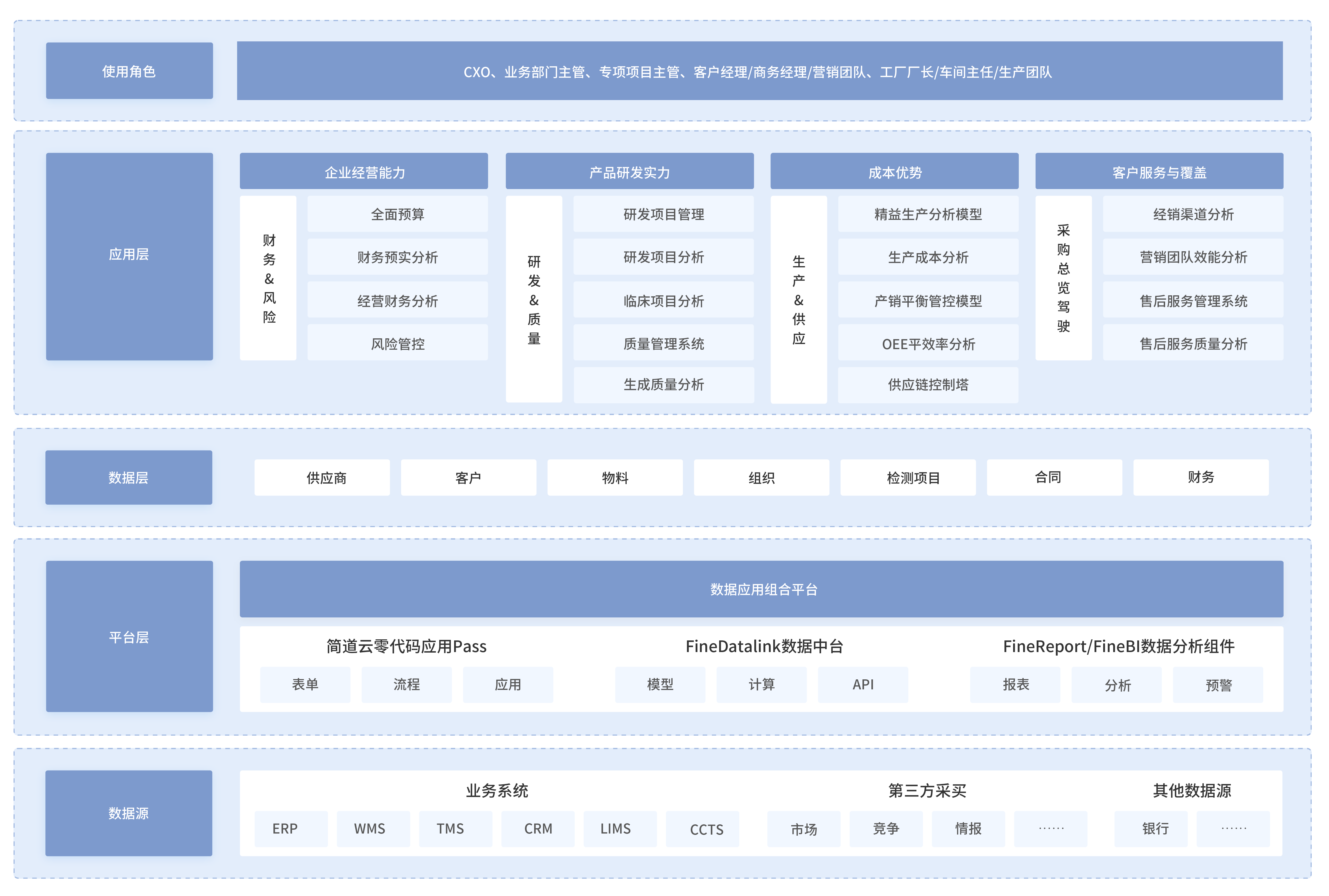 建立面向各职能部门的数据平台,实现公司各部门以及各层级之间的信息共享、业务分析决策、协同办公的业务诉求。