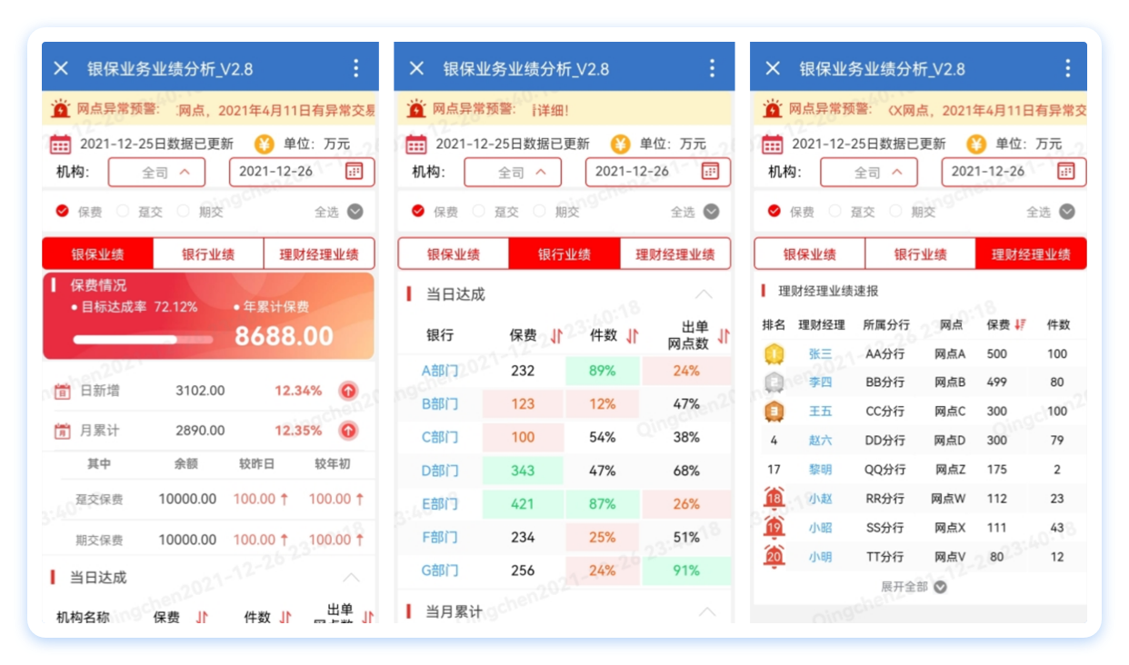 渠道实时情况及时传递给银保经理,实现固化现有渠道、开拓空白渠道、抢占对手渠道,并最终提高网点利用率,提升网均产能。