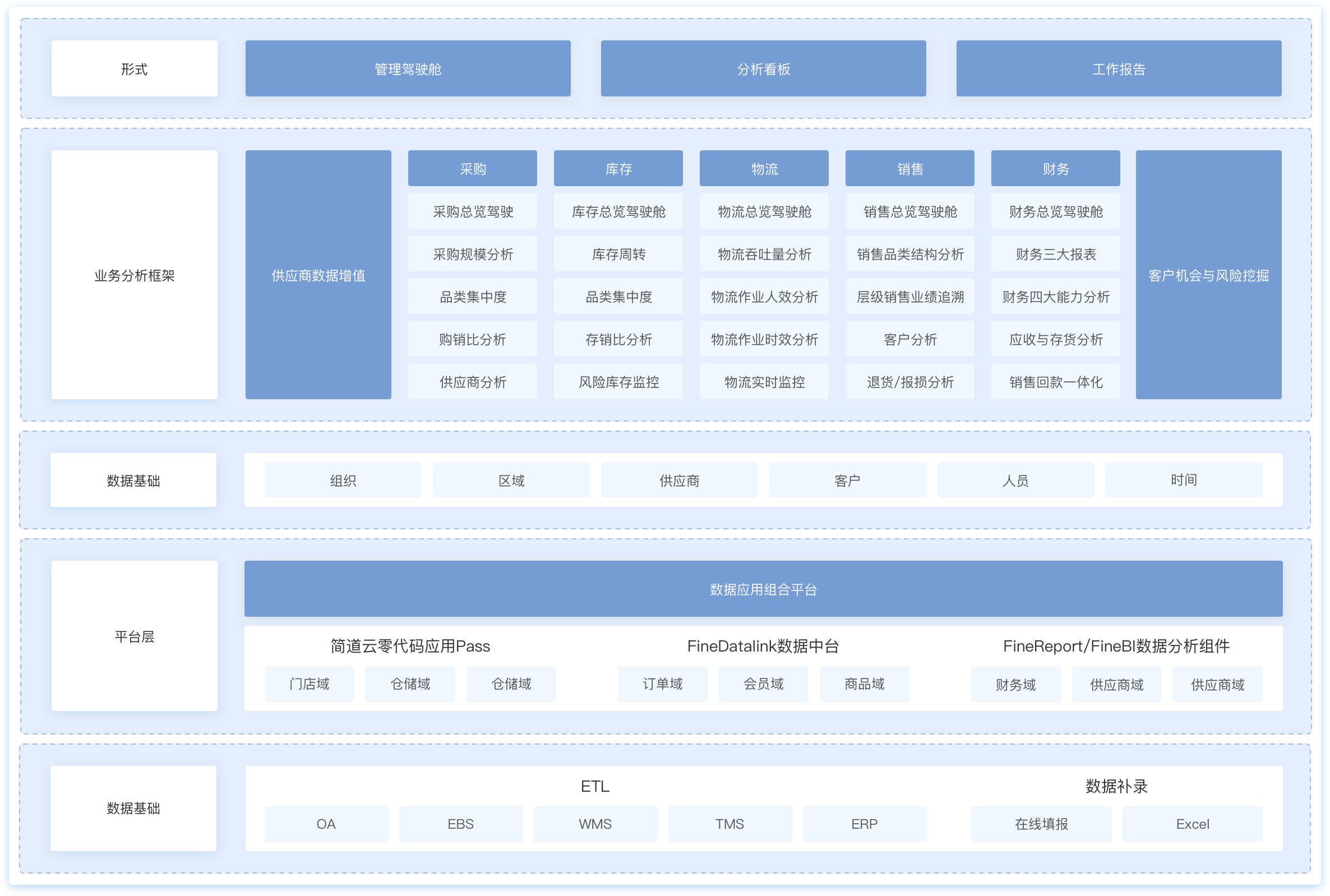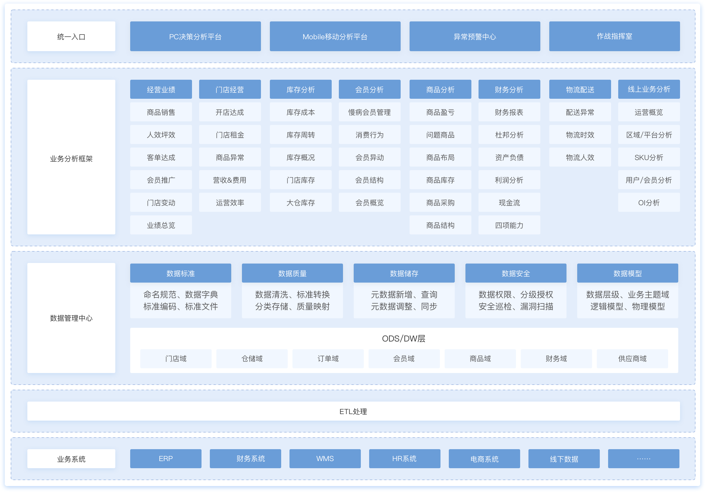 建立面向各职能部门的数据平台,实现公司各部门以及各层级之间的信息共享、业务分析决策、协同办公的业务诉求。